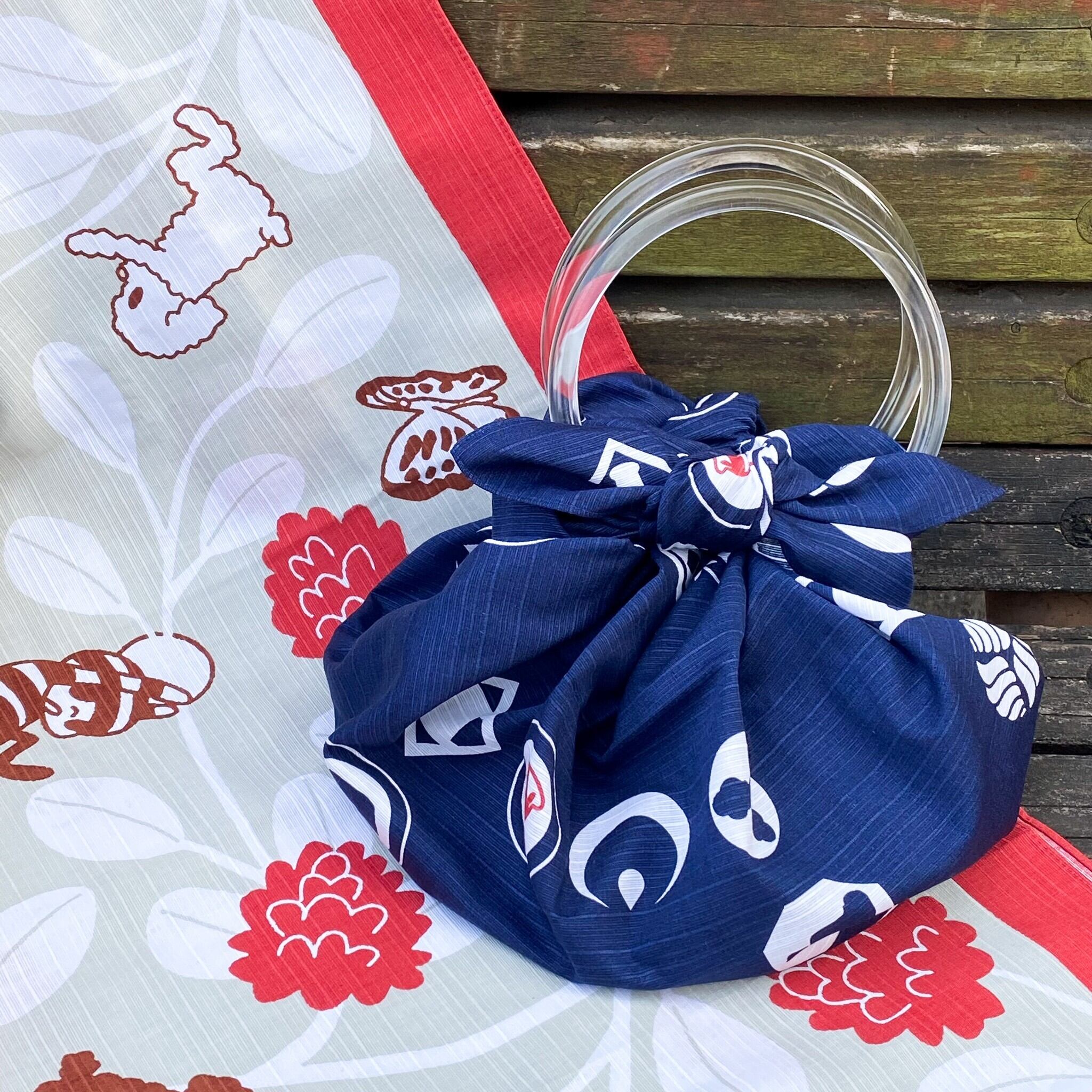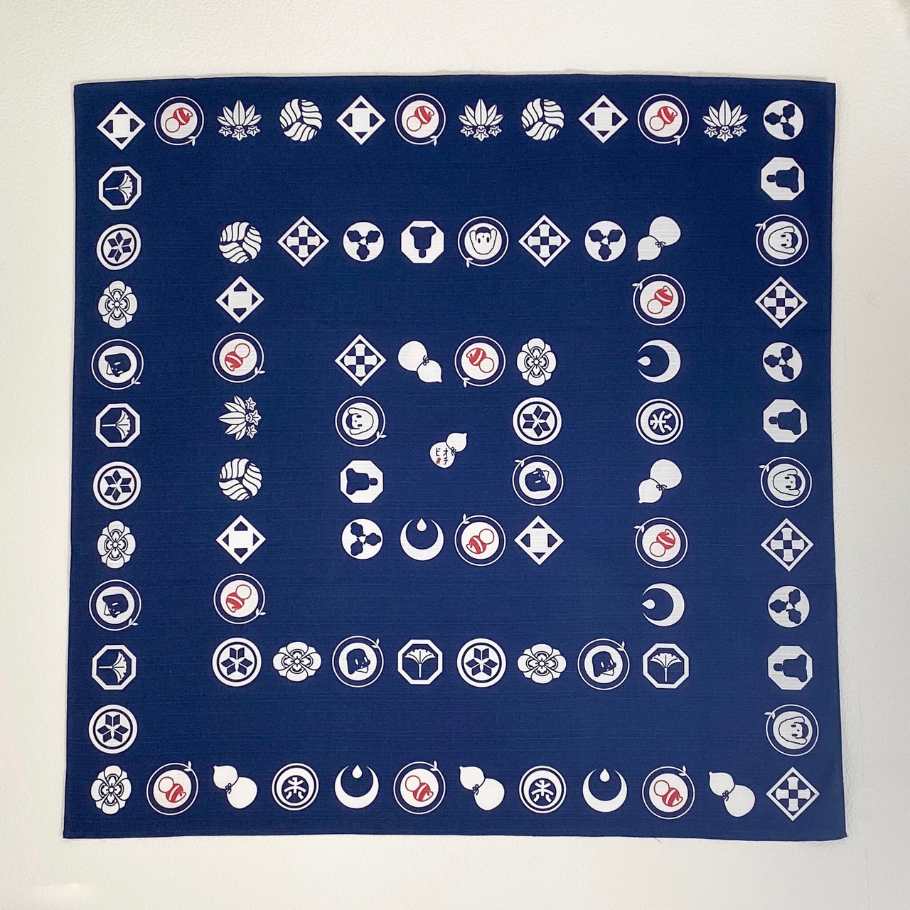 てぬぐいの中でも人気な鎌倉モチーフをちりばめた、シックな家紋小紋柄が今度は福風呂敷になってお目見えです。